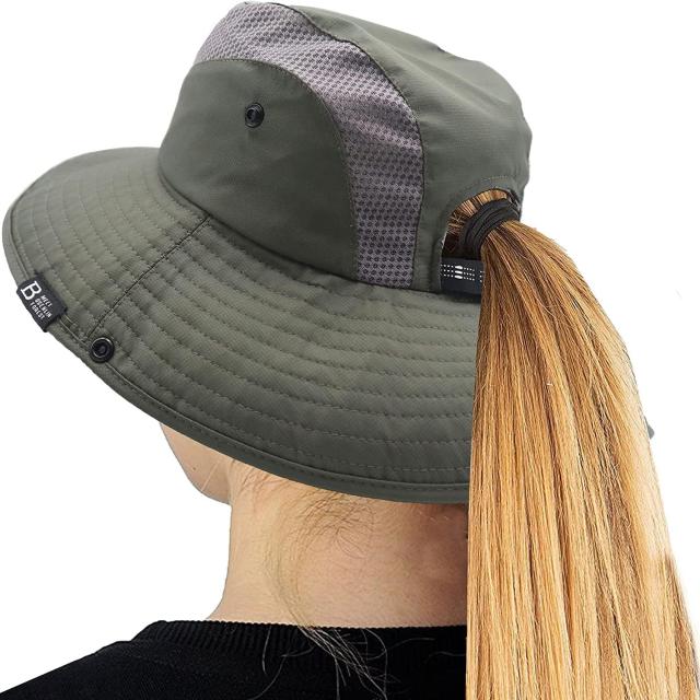 帽子の後ろにあるポニーテールの穴は、女の子なら散らかった髪を詰めるにも役を立ちます。