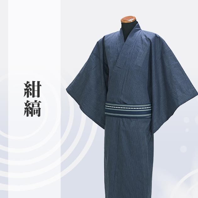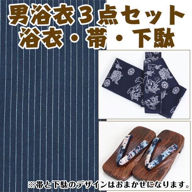 浴衣 男性 レンタル NT-my151 浴衣3点セット☆浴衣・帯・下駄☆紺色/縞 送料無料