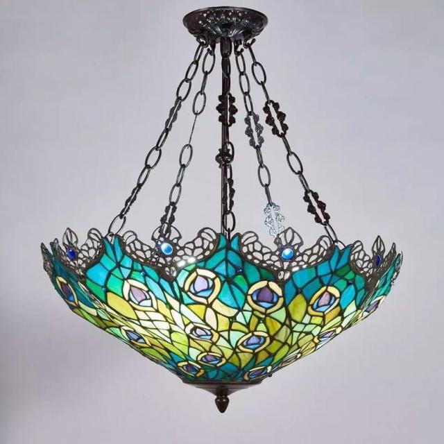 ステンドグラス.ペンダントライト豪華天井照明ステンドグラスランプ ガラス工芸品 電源直結タイプ