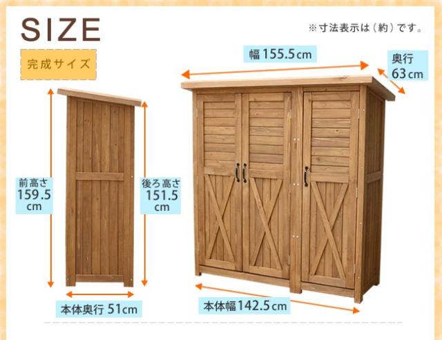 木製大型収納庫(三つ扉)【送料無料 物置 倉庫 収納庫 天然木 木製 庭 物入れ おしゃれ 大型 北欧 ナチュラル ガーデニング キャンプ