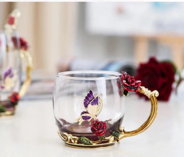 バラ ガラス製 ティーカップ 2点セット食器 コーヒーカップ