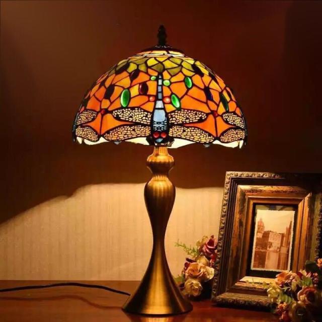 ステンドグラスランプ 卓上スタンド 豪華テーブルランプ 卓上照明 ガラス工芸スタンド.銅スタンド