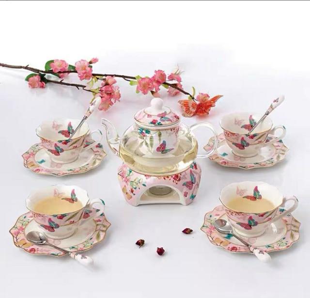 ティー・コーヒーカップセット カップ&ソーサー4客セット 花柄 豪華カップ 上品 陶磁器ティーセット