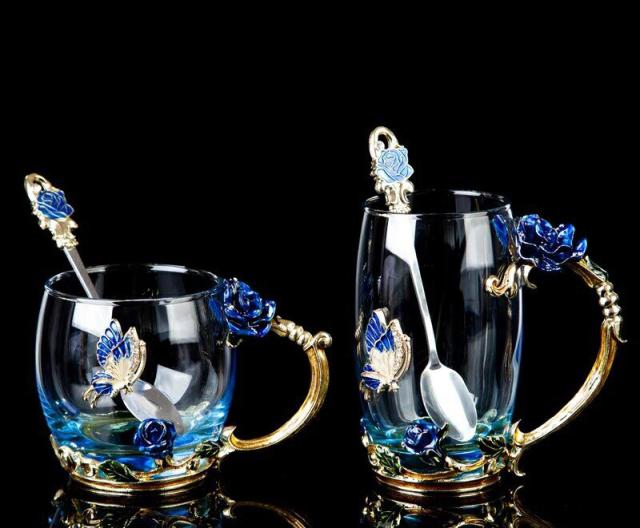 バラ ガラス製 ティーカップ 4点セット食器 コーヒーカップ〜