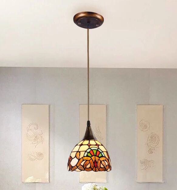ステンドグラス.ペンダントライト 天井照明ステンドグラスランプ ガラス工芸品 電源直結タイプ