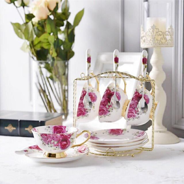 ティー・コーヒーカップセット カップ&ソーサー4客セット 姫系雑貨 バラ花柄
