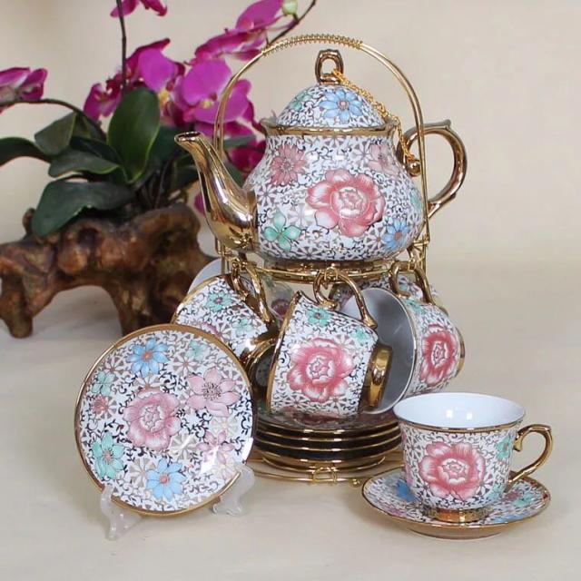 ティー・コーヒーカップセット カップ&ソーサー6客セット 豪華カップ 上品 陶磁器ティーセット