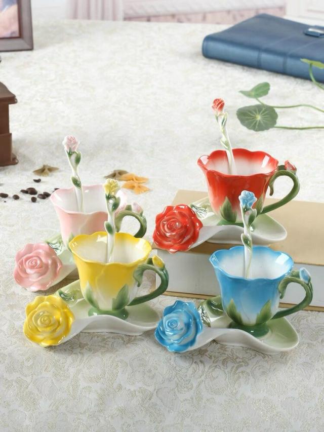 姫系カップ ソーサー4客揃 ティー コーヒー バラ柄