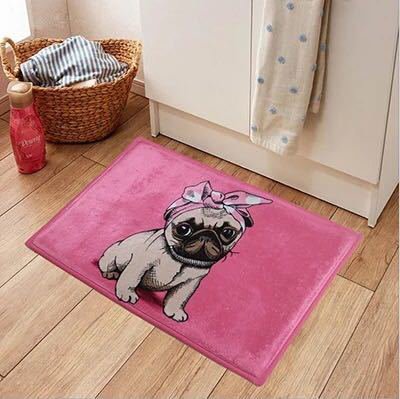 パグタイプ☆ラグマット 玄関マット カーペット お風呂マット 犬柄60x40サイズ パグ雑貨