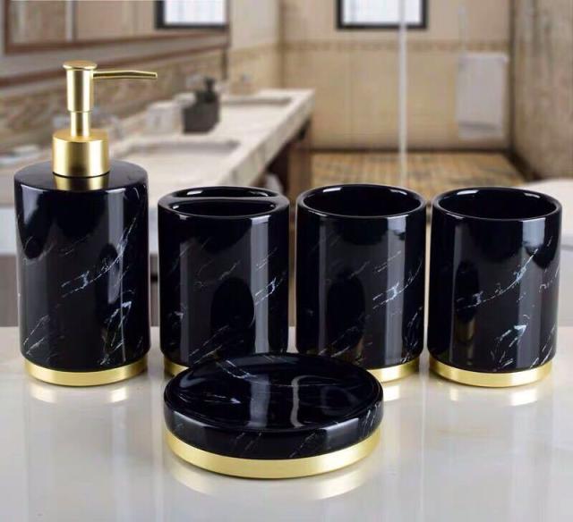 バスルームセット 5点セット ソープディスペンサー 歯ブラシスタンド 石鹸置き コップ 洗面用具