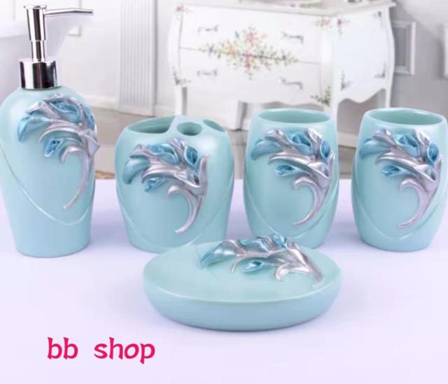 バスルームセット.洗面用具 5点セット ソープディスペンサー 歯ブラシスタンド 石鹸置き コップ