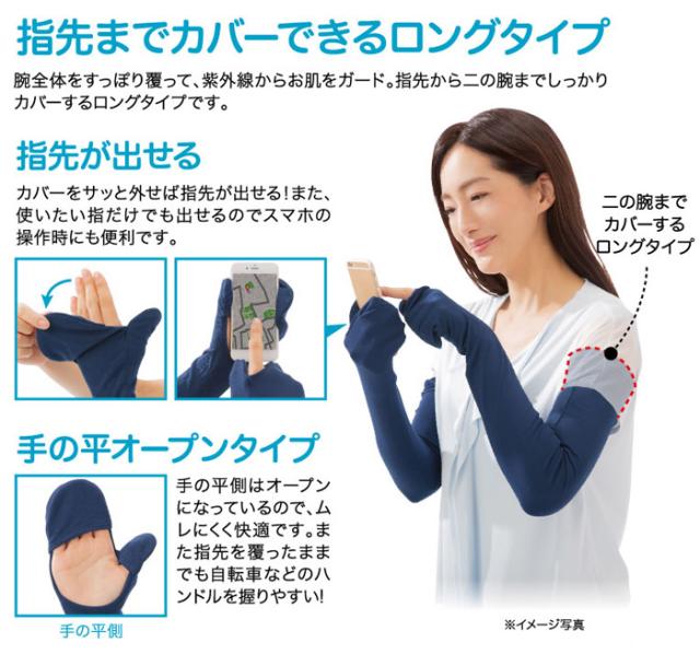 全長約60cmのアームカバーが腕全体をすっぽり覆って、紫外線からお肌をガード。