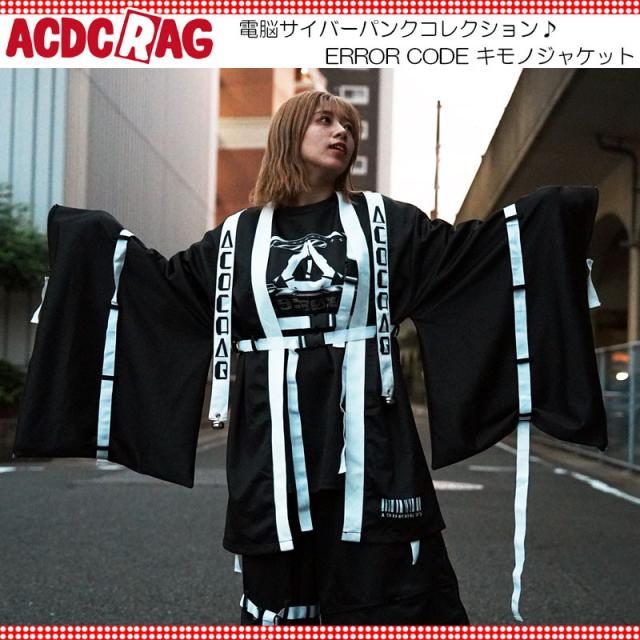 ACDC RAG エーシーディーシーラグ ERROR CODE キモノジャケット ホワイト 着物 羽織 長袖 原宿系 原宿 ライン ファッション パンク ロック サイバー サバゲー