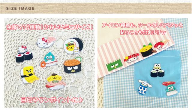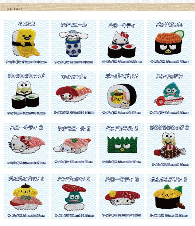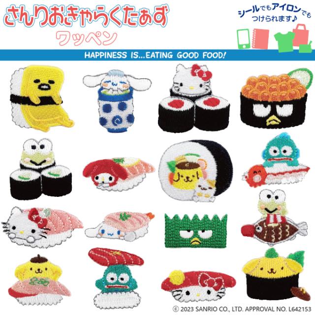 サンリオキャラクターズがお寿司になったかわいいミニワッペン! この商品はアイロン接着のほか、シールとしてもお使いいただけます。 |