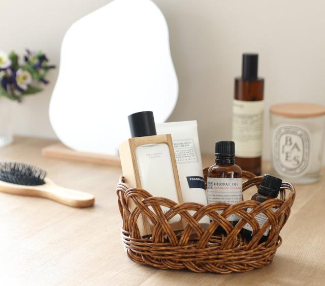 ざっくりと物を入れても様になるオーバル型のバスケットは、縦置きでも横置きでも場所に合わせて収納できるのでスペースが無駄になりません。