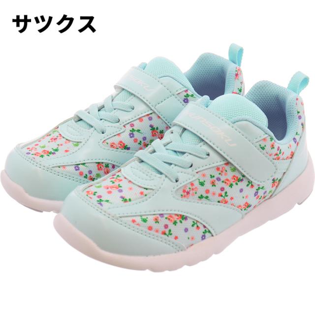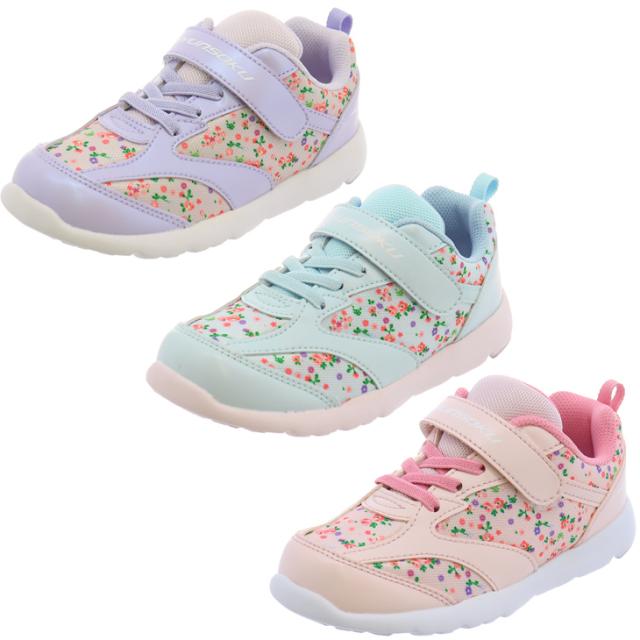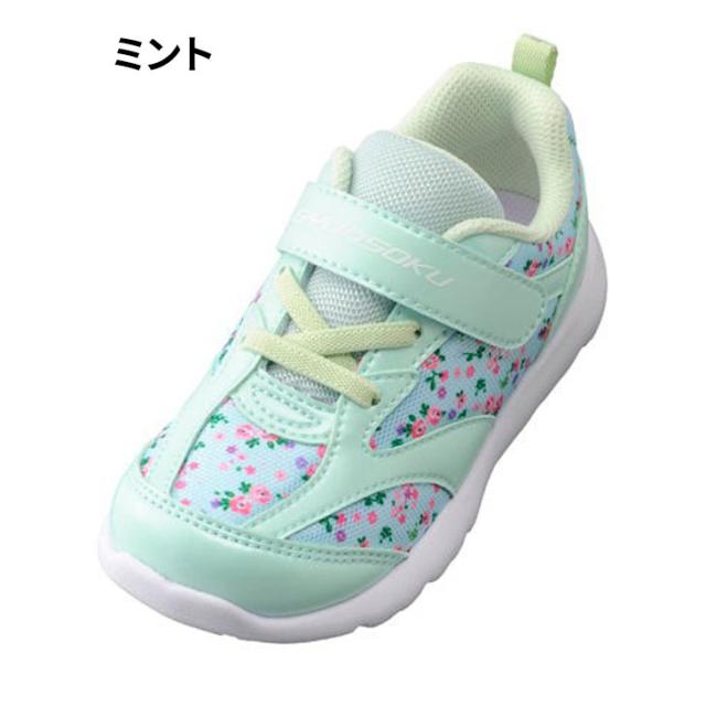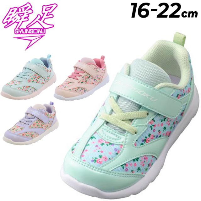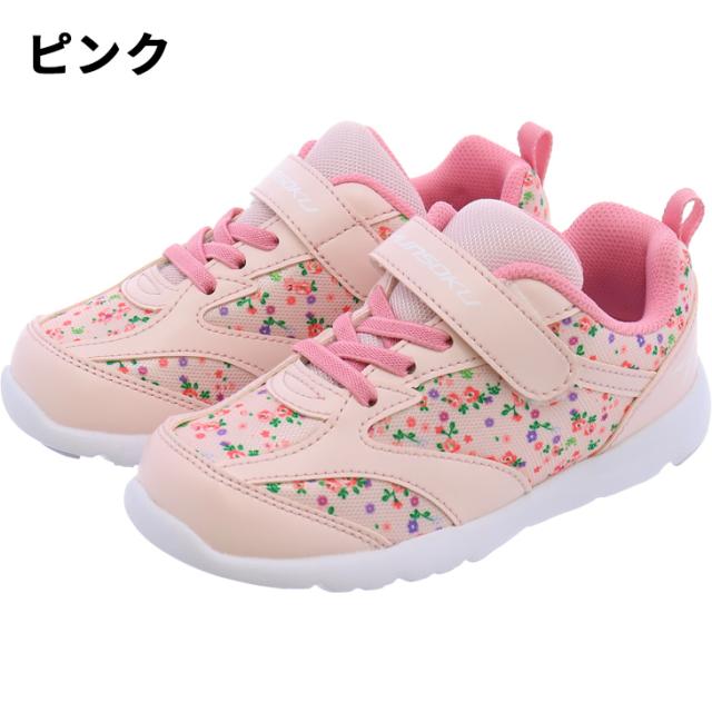 瞬足 足育 キッズ 女の子 スニーカー 運動靴 シューズ シュンソク 16-22cm 子供靴 ジュニアスニーカー 運動靴 キッズスニーカー 運動靴 子ども 小花柄 かわいい 女児 通学 学校 スクール 小学生 通園 ガールズ ブランド くつ/SKF2530
