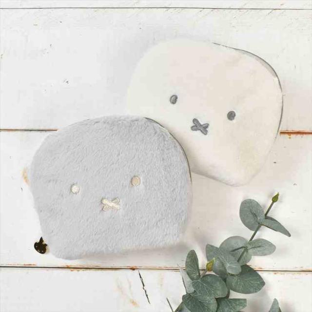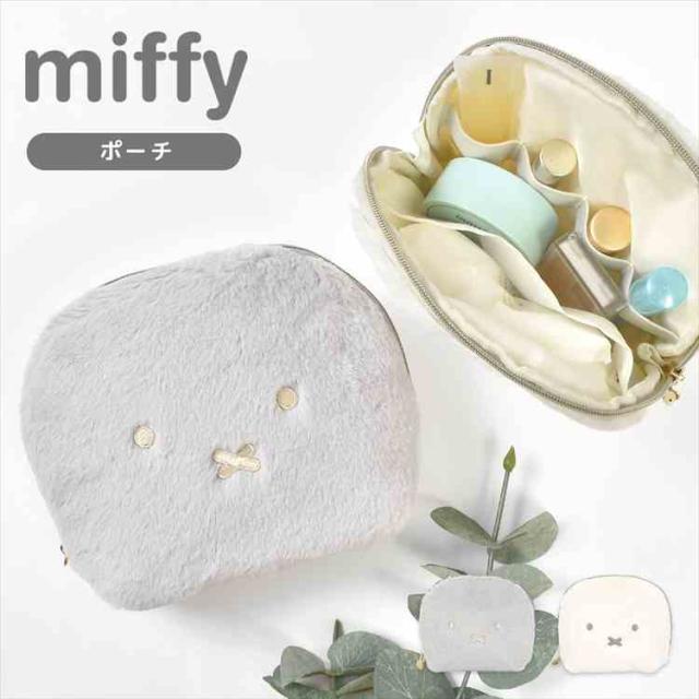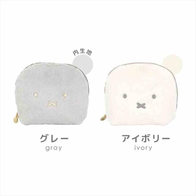 ポーチ ミッフィー miffy コスメポーチ レディース フェイスシリーズ EB481 キャラクター 化粧ポーチ ラウンドポーチ ファー ぬいぐるみポーチ おしゃれ かわいい ふわふわ うさぎ 小物入れ マチあり 内ポケット バンド付き 大人 女性 アイボリー グレー ギフト プレゼント