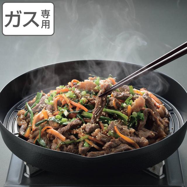 中心から延びている溝により、肉から出る脂や水分を落として、おいしく焼き上げます。深型設計でフチが高いので、野菜をたっぷり入れても落ちにくいです。表面はふっ素加工が施されているので、焦げつきにくくお手入れも簡単です。