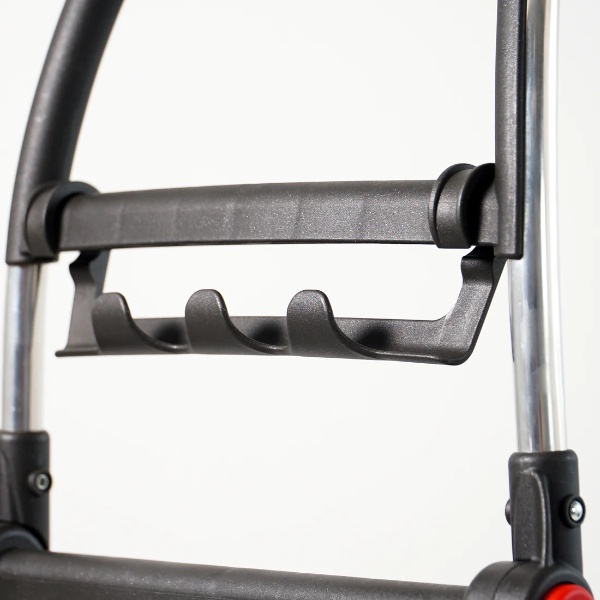 また、フレームには取り外し可能なバーフックがついており、スーパーのショッピングカートに引っ掛けてお買い物ができます。反せばエコバッグを引っ掛けることもできます。
