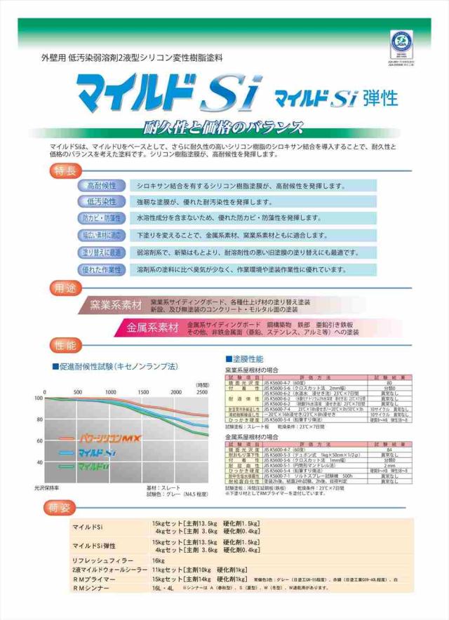 外装用低汚染弱溶剤2液型シリコン変性樹脂塗料