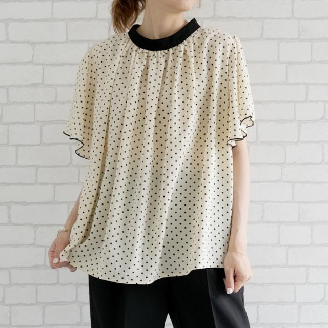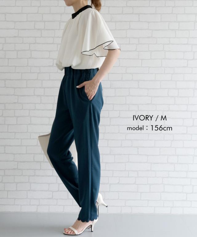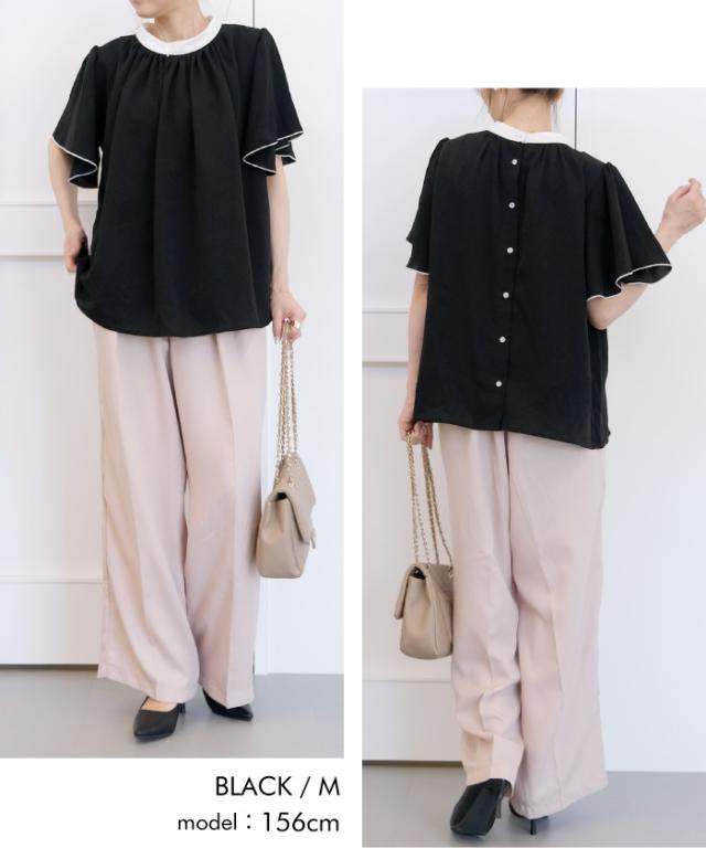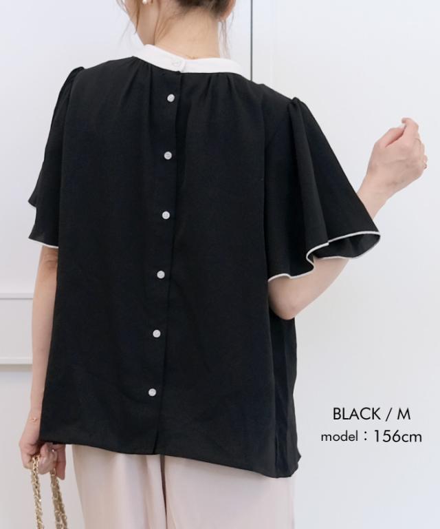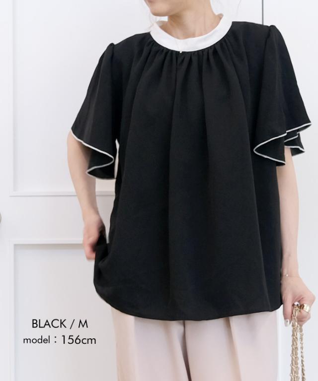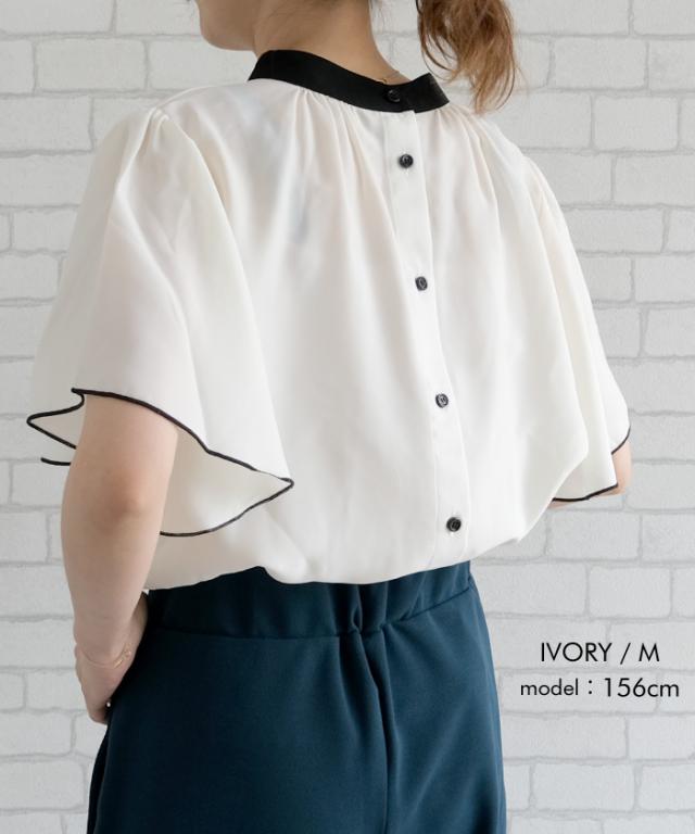 ふわりと揺れるフレア袖が上品な魅力を引き立てる!バイカラーフレア袖ブラウス