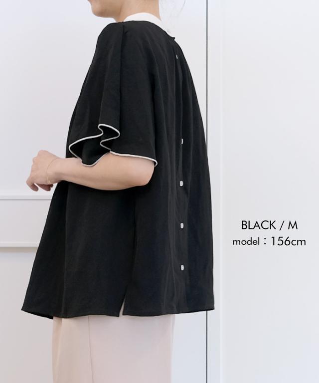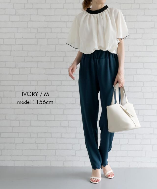 ≪ゆうメール便配送10・代引不可≫ バイカラーフレア袖ブラウス 春 夏 M L アクアガレージ aquagarage
