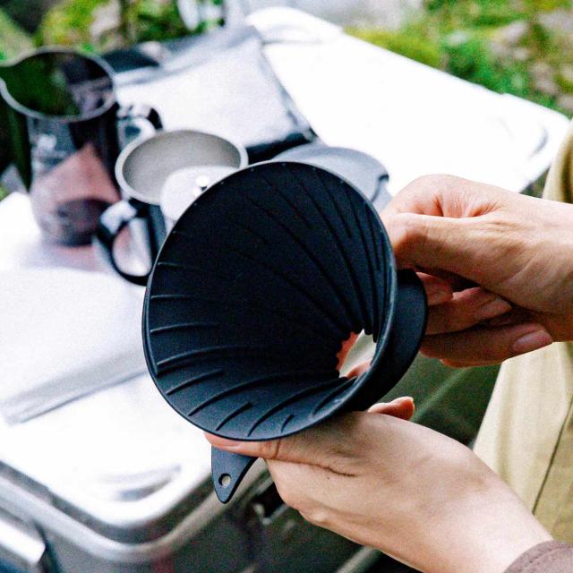 折りたたんでコンパクトに持ち運べるアウトドア用ドリッパーです。「HARIO OUTDOOR」シリーズのV60ドリッパーの使い心地を再現している優れたアイテムです。1杯〜2杯用でソロキャンプや登山用に本格コーヒーをお愉しみいただけます。