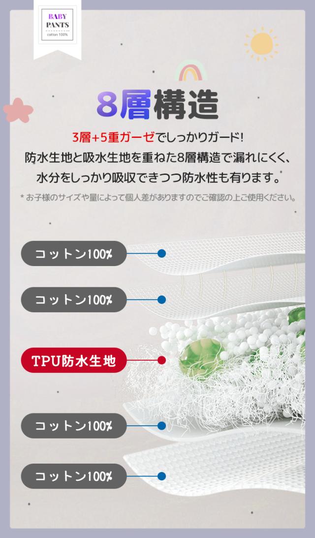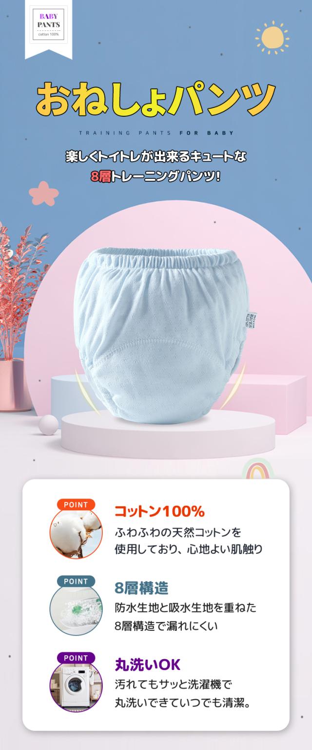 トレーニングパンツ 8層 女の子 男の子 夜 トレーニング パンツ 90 100 おねしょパンツ 子供 子ども キッズ トイレトレーニング パンツ コットン100% 綿 防水 吸収 伸縮性 通気性 ゴム付き 洗濯機ok トイトレ トレパン おねしょ対策