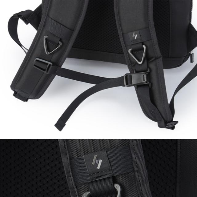 | 本体生地に600dのポリエステルをベースに溶剤を95%以上排除した純度の高いポリウレタンを表面に加工してる事により、生地自体の耐久性・防水性が高くなっております。付属には、裏面にPVC加工されたナイロン100%の生地と60dのダブルダイヤリップナイロンに裏面PVC加工されたものを使用している為、生地自体の防水性を高めております。全体的に革や金属のパーツを使わず、生地も機能性を保ちつつ軽量な物を使っておりますので、軽量な仕上がりになっております。現行の No.021800 BACKPACK モデルのマイナーチェンジを加え新しい型へとバージョンアップしたアイテムになります。 |