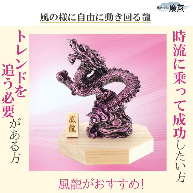 本商品(風龍)は、風の様に自由に動き回る龍で、自由の象徴。時流に乗って成功したい方、トレンドを追う必要がある方には風龍がおすすめ。