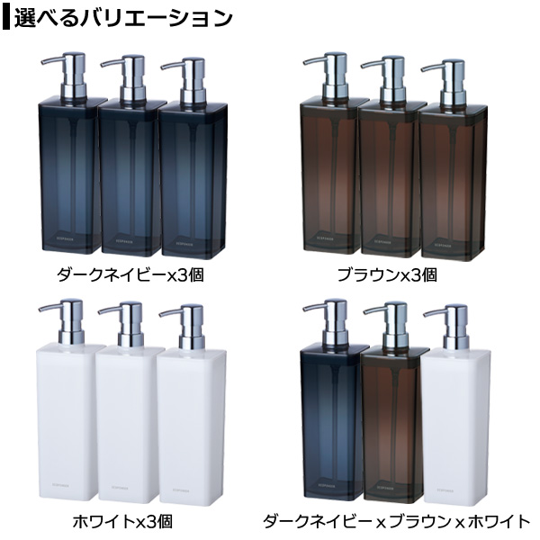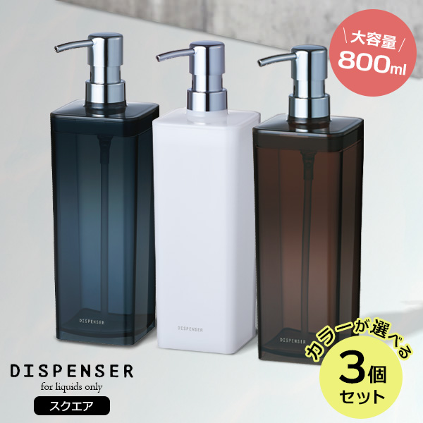 ディスペンサー N800 800ml カラーが選べる3個セット | 詰め替えボトル シャンプーボトル つめかえ 大容量 容器 ポンプ プッシュ 詰替え バス用品 お風呂 浴室 浴用 日本製
