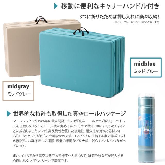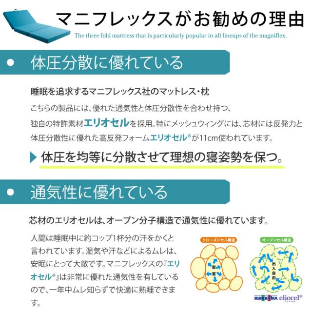 正規販売店 マニフレックス magniflex メッシュウイング 直敷き 三つ折り マットレス 高反発 マットレス 折りたたみ ベッドマットレス 敷布団 厚さ11cm シングル ミッドブルー ミッドグレー 長期保証 新生活