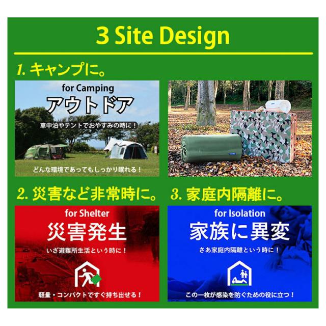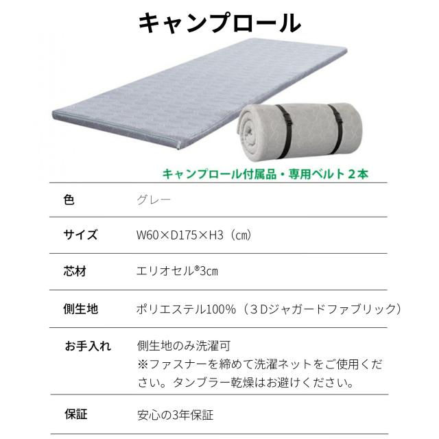 | 製品特徴 | 『どんな環境であっても、しっかり眠れる』 コンパクトで機動性、デザイン性に優れたキャンプロールは、熟睡がないがしろにされてきた様々な生活シーンで、本来あるべき質の高い睡眠環境を実現します。 |
