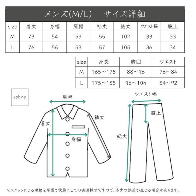 二重ガーゼ(2重ガーゼ) 綿100% パジャマ メンズ 通年 快眠 日本製 ギフト対応 [sohno] ソーノ
