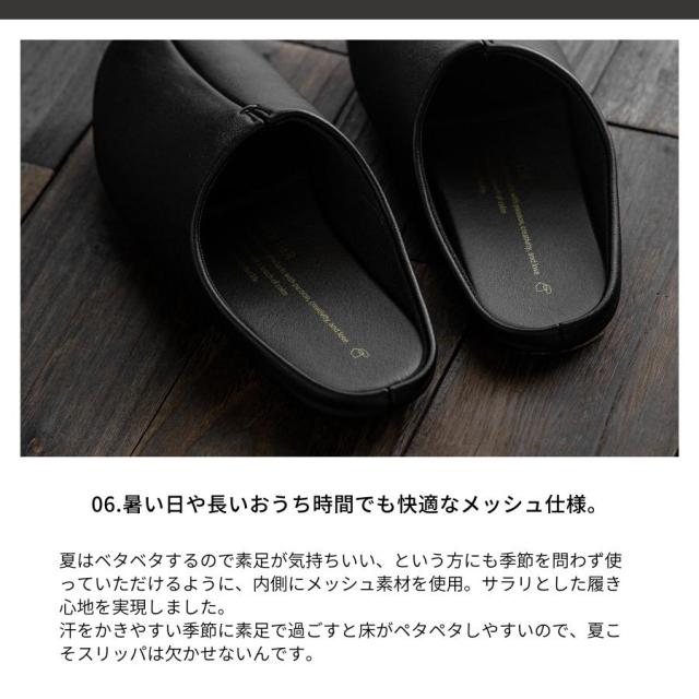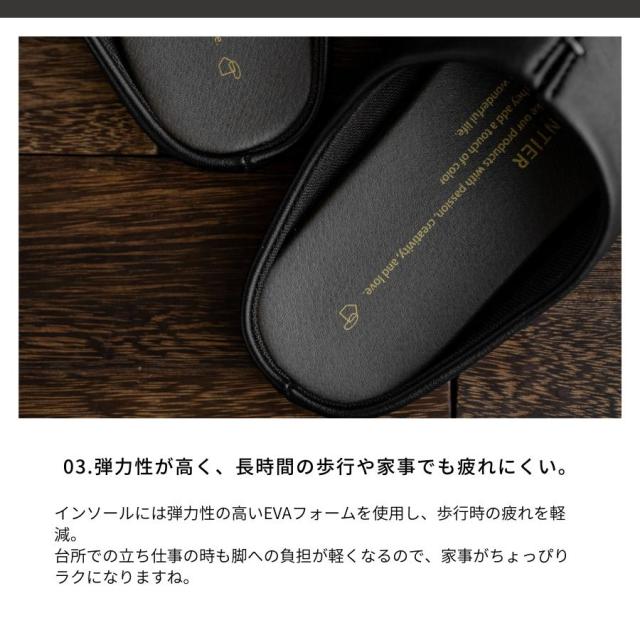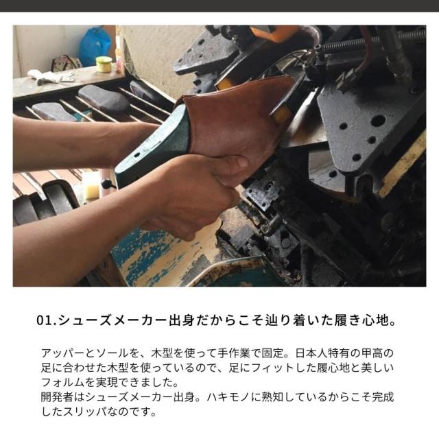 「歩く」を考えたスリッパ 脱げやすい、歩きにくい、インテリアに溶け込むデザインのスリッパがない…そんな悩みを解消したい。 木型を使用して、靴の製法を取り入れて製造することにより、履いた瞬間から足にぴったりと馴染む履き心地を実現。 足にフィットすることにより脱げにくく、長時間履いていても疲れにくい、歩きやすさにこだわったスリッパが完成しました。 |