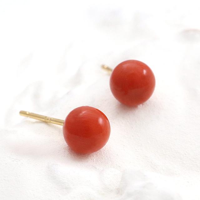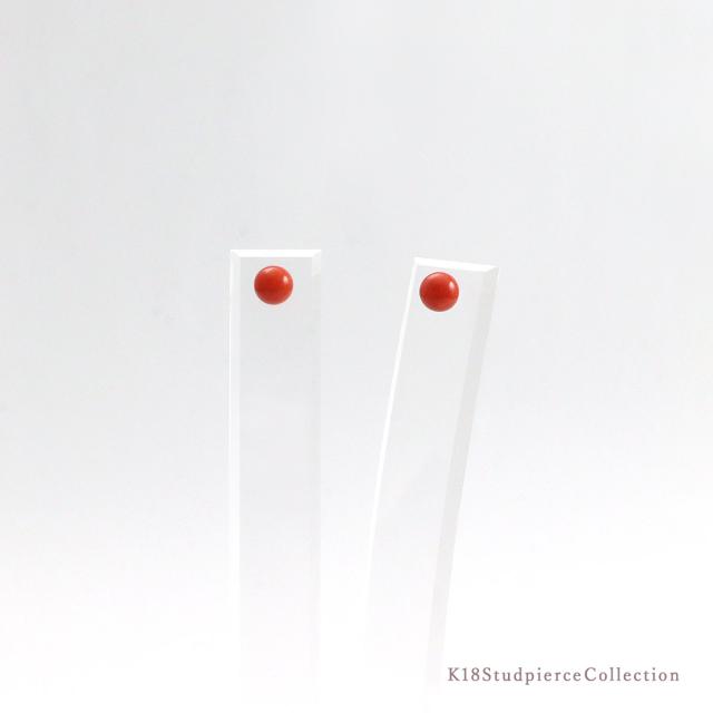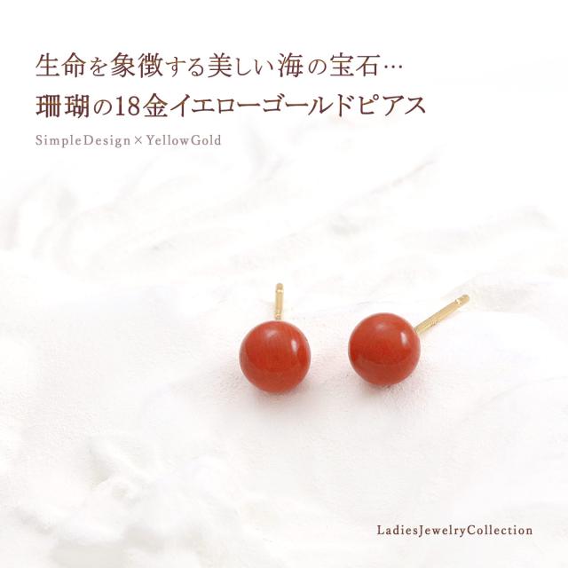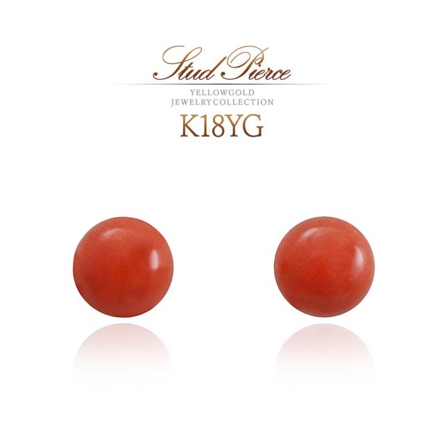 珊瑚ピアス K18 イエローゴールド 18金 ジュエリー コーラル シンプル スタッド サンゴ 珠 ピアス プレゼント 記念日 還暦祝い 昇進祝い 珊瑚アクセサリー 珊瑚 赤 レッド 赤色 宝石 天然 本物 天然石 3月 誕生石 一粒 女性 彼女 妻 小振り 小ぶり 1粒 ホワイトデー お返し