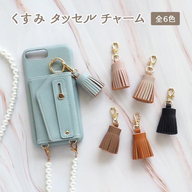 タッセル チャーム フリンジ パーツ【くすみ タッセル チャーム】キーホルダー アクセサリー ストラップ レザー 革 皮 PU くすみ 韓国 おしゃれ 携帯 携帯ケース スマホ カバー iPhoneケース などに おすすめ 単品 ギフト プレゼント メール便送料無料