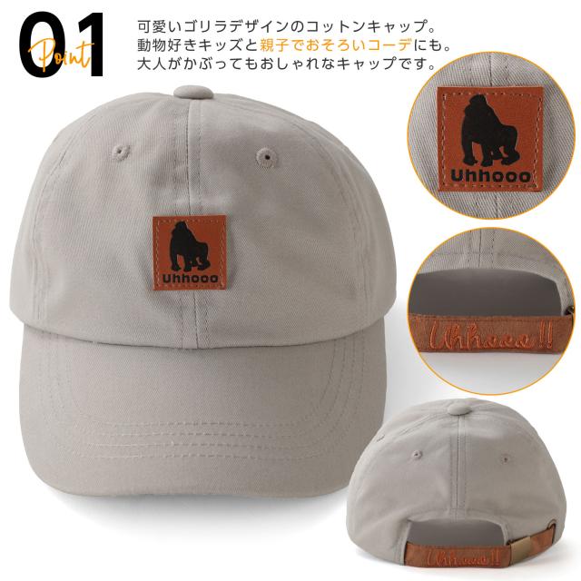帽子 キャップ キッズ 男の子 女の子 親子 おそろい お揃い ペア ゴリラ 動物 おしゃれ かわいい かっこいい シンプル 無地 人気 メンズ レディース 大人 子供 子ども こども 小学生 家族 日除け 日よけ 日焼け 防止 春夏 秋冬 UV コットン 綿 アジャスター サイズ調整