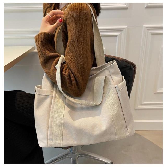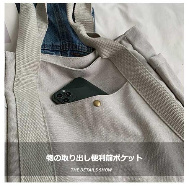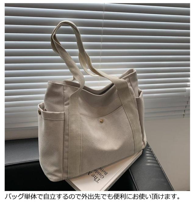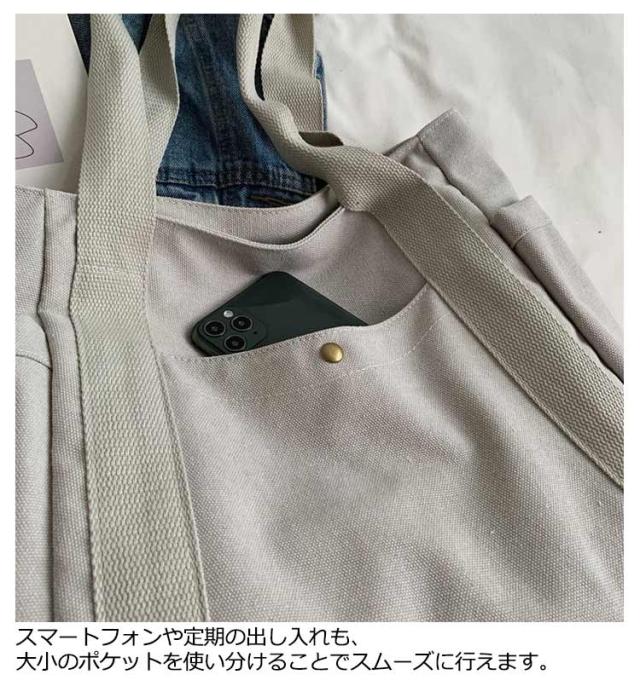 | 収納力の高さで人気のキャンバストートバッグが登場! マチがありA4サイズを収納できます。 内側と外側の両面に様々なポケットが付き大きな荷物と細かなグッズを機能的に分けて持ち運べます。 バッグ単体で自立するので外出先でも便利にお使い頂けます。 スマートフォンや定期の出し入れも、 大小のポケットを使い分けることでスムーズに行えます。 お子様をお持ちの方にはマザーズバッグとしてもオススメです♪ 男女問わず使えるシンプルなデザインとカラーが魅力的。 ナチュラルなカジュアルスタイルから大人カジュアルコーデまで幅広く使えます。 | |