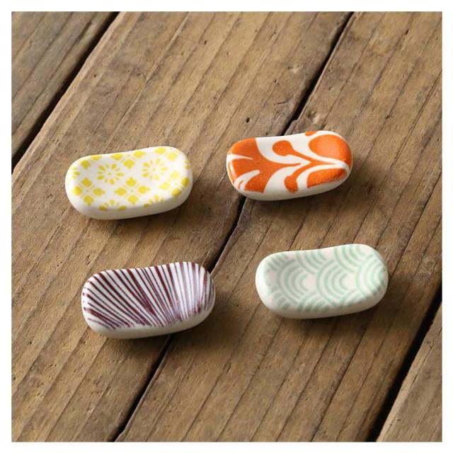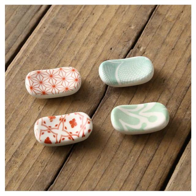 | テーブルを華やかにしてくれる箸置き4個セット シンプルなデザインは、ナチュラルで和テイストのインテリアとも相性抜群です。 箸とスプーン,ナイフとフォーク、箸とれんげなどいろいろなシチュエーションにぴったり合う便利なはしおき。 爽やかな雰囲気なので、新生活のスタートにもぴったりです。 自分用はもちろん、贈り物としても喜ばれそう! 陶器なので、水洗いもでき、衛生的に使えます♪ | |
