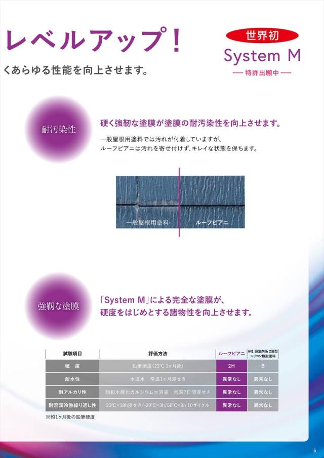 「System M」による完全な塗膜が、硬度をはじめとする諸物性を向上させます。