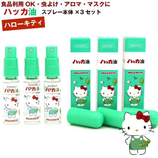 ハッカ油スプレー ハローキティ 本体×3本 (11.5ml×3本) (E) ハローキティと北の動物たちコラボデザイン 北海道 北見 ハッカ油 スプレー メール便 送料無料