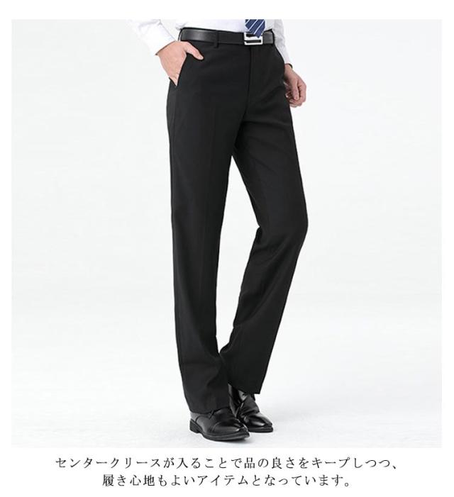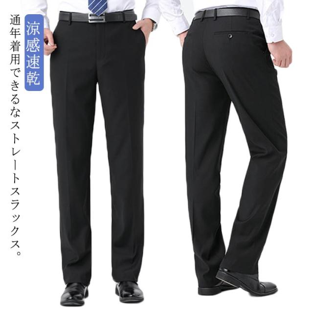 深め股上 ビジネス センタープレス メンズ 速乾 春夏秋 ノータック ビジネスパンツ 清涼 ストレートパンツ 黒 ワイドパンツ スラックス ウォッシャブル 洗える 涼感 涼しい さらさら フォーマル パンツ ズボン 大きいサイズ スーツ地