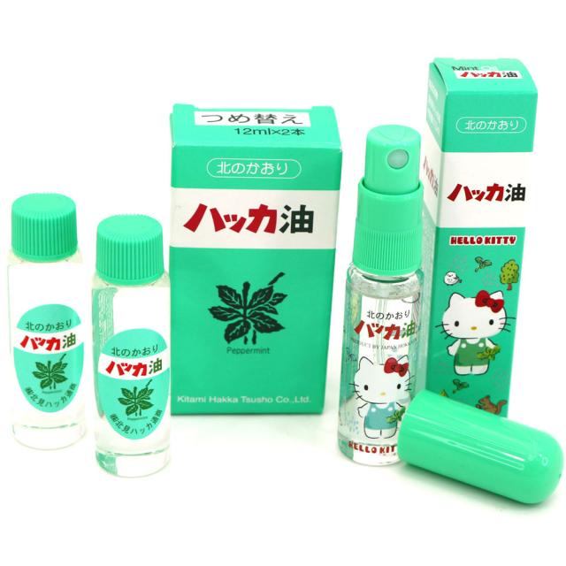 ハッカ油スプレー ハローキティ ハッカスプレーセット (本体11.5ml、詰替え11.5ml×2本入) ハローキティと北の動物たちコラボデザイン