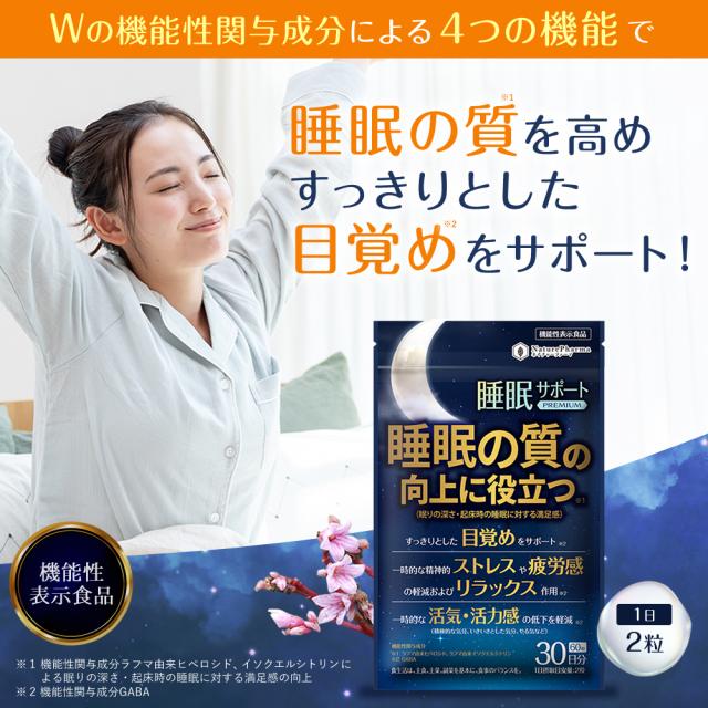 睡眠 サプリ GABA 100mg ラフマ 機能性表示食品 30日分 睡眠の質 向上 目覚めサポート ストレス 疲労感緩和 リラックス 活気 活力感 低下軽減 睡眠サポートプレミアム