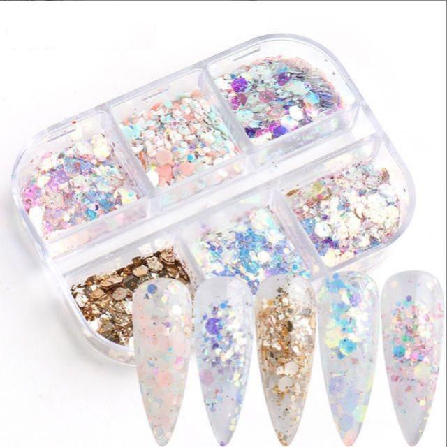 ネイルグリッター ネイルパーツ グリッター キラキラ 6タイプセット ネイル ネイルグッズ マニキュア タトゥ イベント 830703