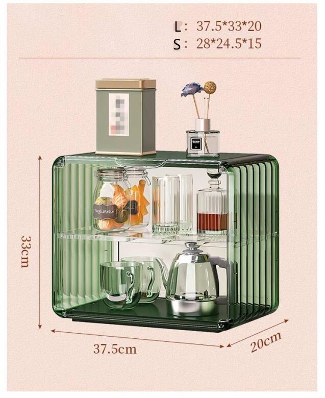 | ミニ食器棚 収納箱 マグネットドア/取り外し可能な仕切り ドア付き/2段収納/見えやすい。 磁力開閉ロック。使用便利! 取り外し可能な仕切り板。使用便利、手入れ簡単。 大容量・取り出し便利! 頂部収納スペースあり、安定な構造。重ね可能、自由組合! | |