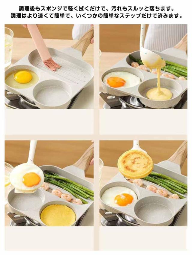 ステーキ フライパン IHフライパン ガスフライパン 送料無料 仕切り 壁掛け 麦飯石 四孔鍋 三孔鍋 火式 焦げ付きにくい 仕切りフライパン IH対応 お弁当 ガス対応 弁当作り キャラ弁 型 朝食作り IH IH対応