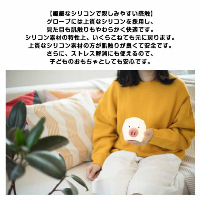 | 【繊細なシリコンで親しみやすい感触】 グローブには上質なシリコンを採用し、見た目も肌触りもやわらかく快適です。 ブタの可愛らしいフォルムと合わせて、より親しみやすい。 シリコン素材の特性上、いくらこねても元に戻ります。 上質なシリコン素材の方が肌触りが良くて安全です。 さらに、ストレス解消にも使えるので、子どものおもちゃとしても安心です。 【使いやすい】 ムードライト、ナイトライトとしてご使用いただけます。 照明の強弱を調節することができて、更に時間を延ばして消灯する設計があります。 【充電可能】 おしりにDC3.5の充電口がついており、付属のDC3.5-USB充電ケーブルで充電します。約3.5時間でフル充電でき、充電が完了するとランプが消えます。 【光の明るさ調節可能】 ブタの鼻を回転し明るさを調節でき、左に回転すると徐々に明るさが柔らかくなります。右に回せばますます明るくなる。異なる明るさの光は、異なる雰囲気に適応します。 【タイマー機能付き】 下部ボタンをダブルクリックして遅延消灯に入ります。6段あり、1段の時間は10分です。回転すると自動的に消灯します。 2秒を長押しして消灯モードに入ります。 短く押して、タイミング設計に入って、タイミングの時間10分、20分、30分、40分、50分、60分を選ぶことができます。時間が長くなると、タイマーランプの数が増えます。 【使える場所】 寝室、リビングルーム、子ども部屋、作業台、廊下、幼稚園などの場所に適しています。 夜間にお母さんの授乳ライト、オムツ換えライトとしても最適です。 | |