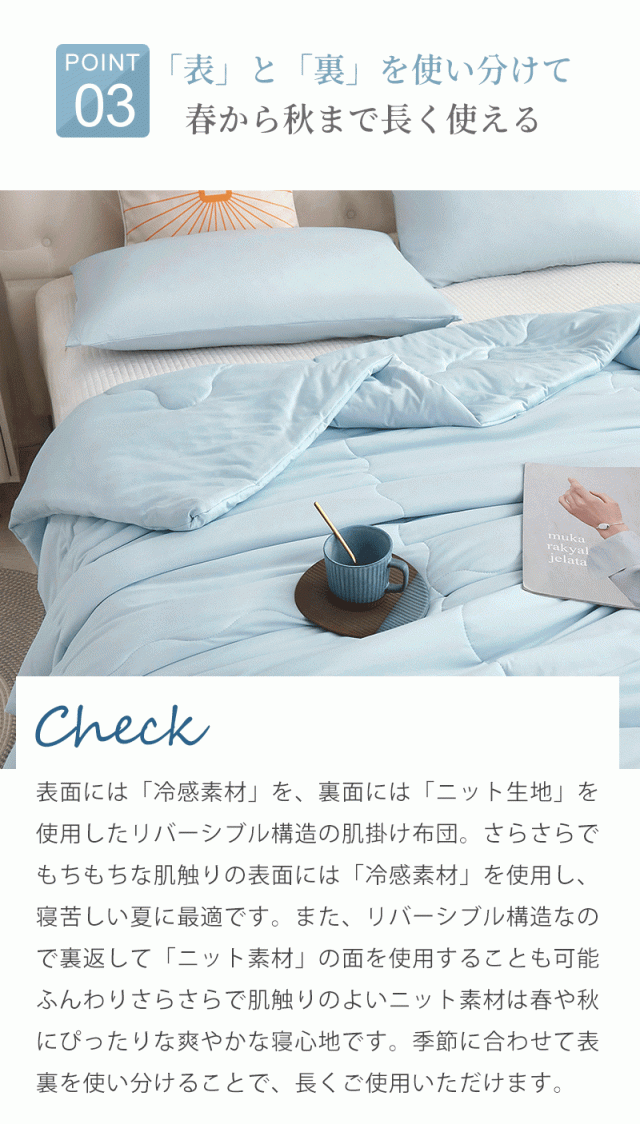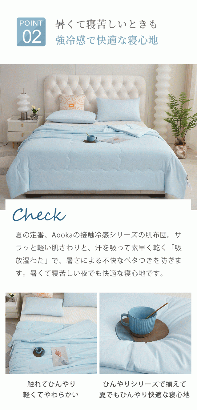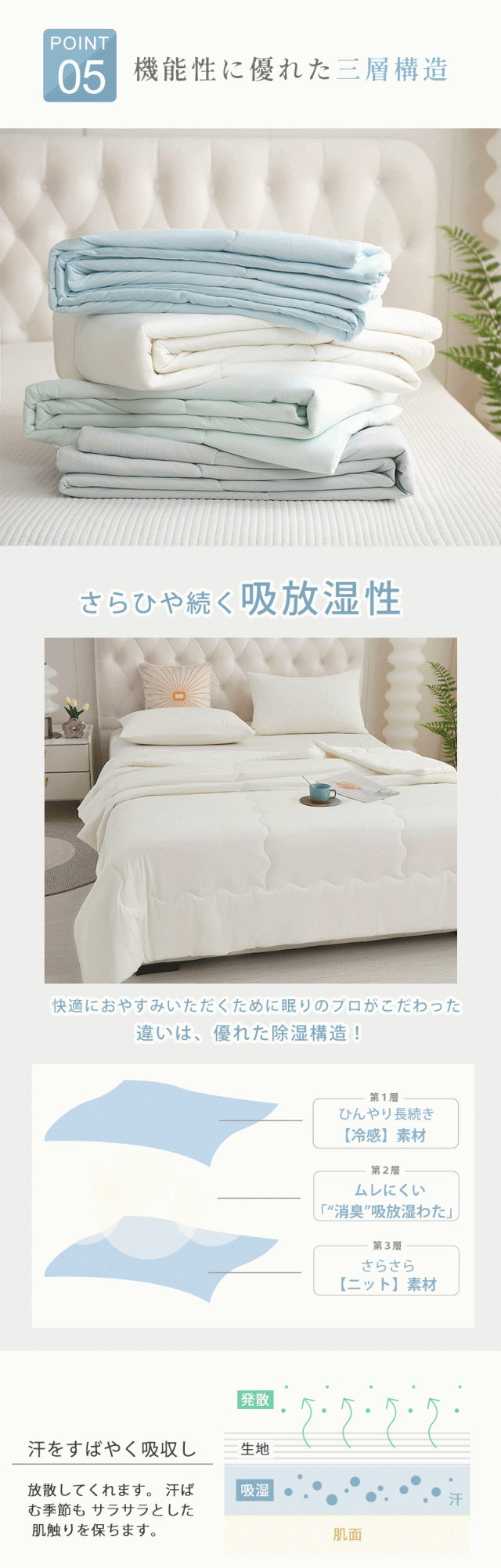 ★接触冷感+吸放湿でさわやかな寝心地続く!